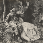 Once at night four musicians passed by the red beeches in a merry mood. There they agreed to play a piece in honour of the deceased count. While they were playing, the count appeared in white robes, gave them each a leaf and immediately disappeared… Read more: 162. The Four Musicians / Die vier Musikanten - 163. The Sheet full of Wheat / Das Tuch voll Weizen