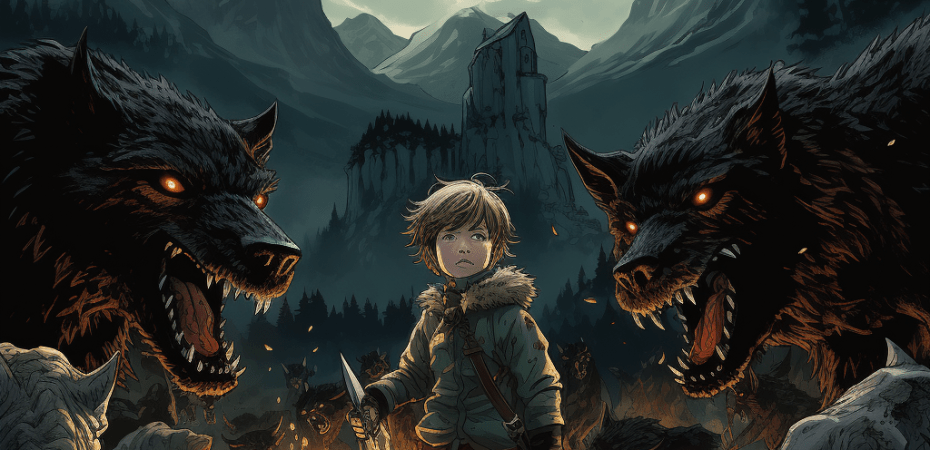 Da gab es Leben im nahen Gehölze. Mit fletschenden Zähnen sprangen wilde Tiere aller Art auf den Knaben los; doch er wehrte sich mit seinem Stocke. Bis an den äussersten Ring kamen sie heran, kehrten aber knurrend wieder zurück. Einen Augenblick blieb alles still. Dann kamen die Vättnerberger daher mit ihren Bündeln; sie erklärten, sämtliche Gebäude seien verbrannt. Man habe beschlossen, auszuziehen; seine Eltern warten auf ihn eine kleine Strecke weiter oben. Er weigerte sich, ihnen Folge zu leisten.