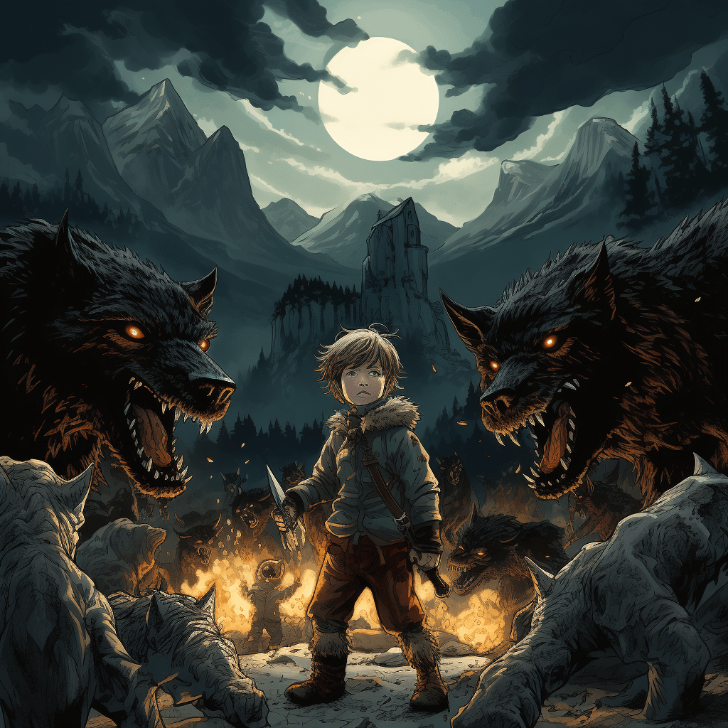 There was movement in the nearby copse. Wild animals of all kinds leapt at the boy with bared teeth, but he defended himself with his stick. They came right up to the outermost ring, but returned again with a snarl. For a moment everything remained silent. Then the Vättnerbergers came along with their bundles; they explained that all the buildings had been burnt. They had decided to move out; his parents were waiting for him a little way up the road. He refused to follow them.