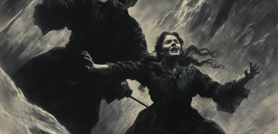 When spring came, Segnes went up to the mountain pasture with his cattle. The mother could not follow him, for she was old and ill. But her food soon ran out, and the son stayed on the mountain pasture and did not allow her anything. How was she to continue to live? Filled with bitter sorrow, she decided to go to the mountain pasture if possible and to ask for help and care from her son. Slowly, close to death, she dragged herself up the mountain. But two fiery eyes have spied her; unnoticed, on hidden paths, Sardona crept after her.