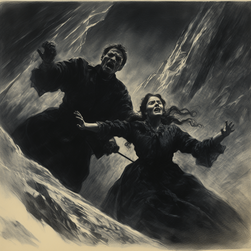 But every year, on the day of the sacrilege, a crevice opens up in the glacier, and the banished couple descend to its edge and implore their mother to take back the evil word. They listen and listen to all winds to hear if the redeeming voice can be heard. Time and again they have to return to the cold dungeon, and time and again the icy gates close.