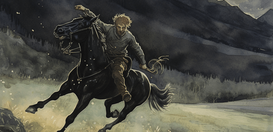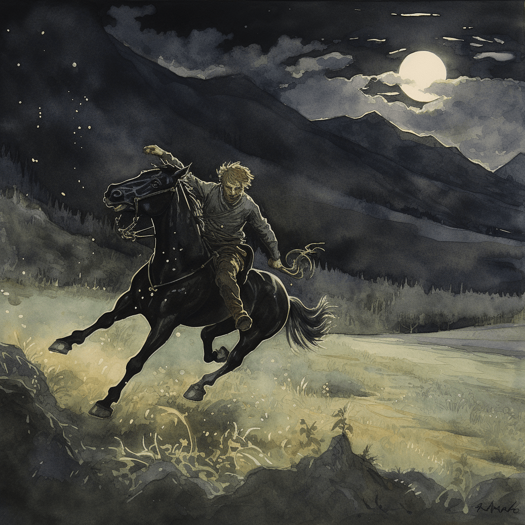 In Mels they knew, and still know, the Nachtfüllen (Night Foal), which wander from Plons up to the Schützenhaus, but is not mounted, but mounts the wanderers and rides them tired. In the marshy fields, towards the Rhine, there is another one that can be ridden; but it went out into the night like lightning with some of those who tried it, so that when it “lüterlete” (morning dawned) they found themselves in the Liechtenstein area on a funeral pyre and were almost arrested as revellers. Other Melsers returning home from the “Stubeti” suddenly found themselves among the night horses, but were soon thrown off, whereupon the wanton animals dashed up and away.