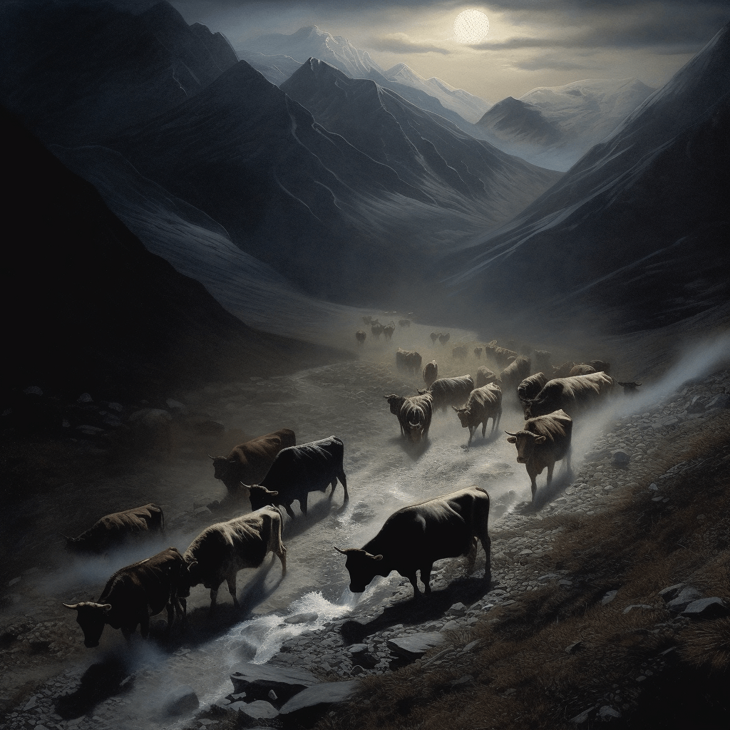 In the lower part of the Malun Alp, the beautiful Dreier forest spreads out. Not infrequently an eerie, shrill whistling rages through, but only at night, especially towards the time when one begins to speak of Alpentladung. This always brings bad weather. One evening, when the “Vonalpfahrt“ was to take place soon, the whistling was heard again and in a very sharp manner. The cattle became restless and the alpine dairyman said: “It would be good if they could find their rest at home in the warm stables.” But there was nothing more to be done, and the dairyman and the farmhands went to sleep.