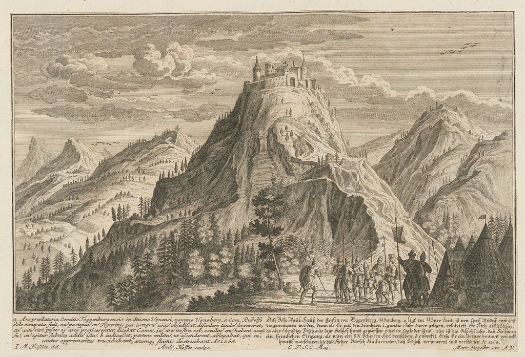 Uznaberg Castle belonged to the Counts of Toggenburg, who took the liberty of seizing and plundering Zurich merchants. The Zurichers, under their field captain Rudolf von Habsburg, set out to break the nest of thieves. A hard siege lasting many months did not achieve its goal. The besiegers were about to leave, when a defender threw live fish at them in an act of excessive courage to convince them that there was no shortage of food. But Rudolf took it for a sign that the castle had a secret entrance. A swineherd revealed it to him. Thus Uznaberg was taken and destroyed.
