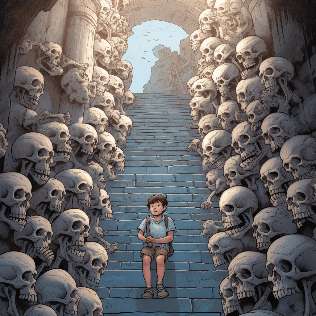 Once a skull on the upper-most row started to rattle. A child saw that and ran outside in fear to call for people. As they arrived and frightfully went inside the skull kept rattling constantly. Finally someone took courage, walked closer and lifted the skull up and then the rattling stopped. A mouse had been trapped inside and jumped to and fro, causing the swaying and rattling.