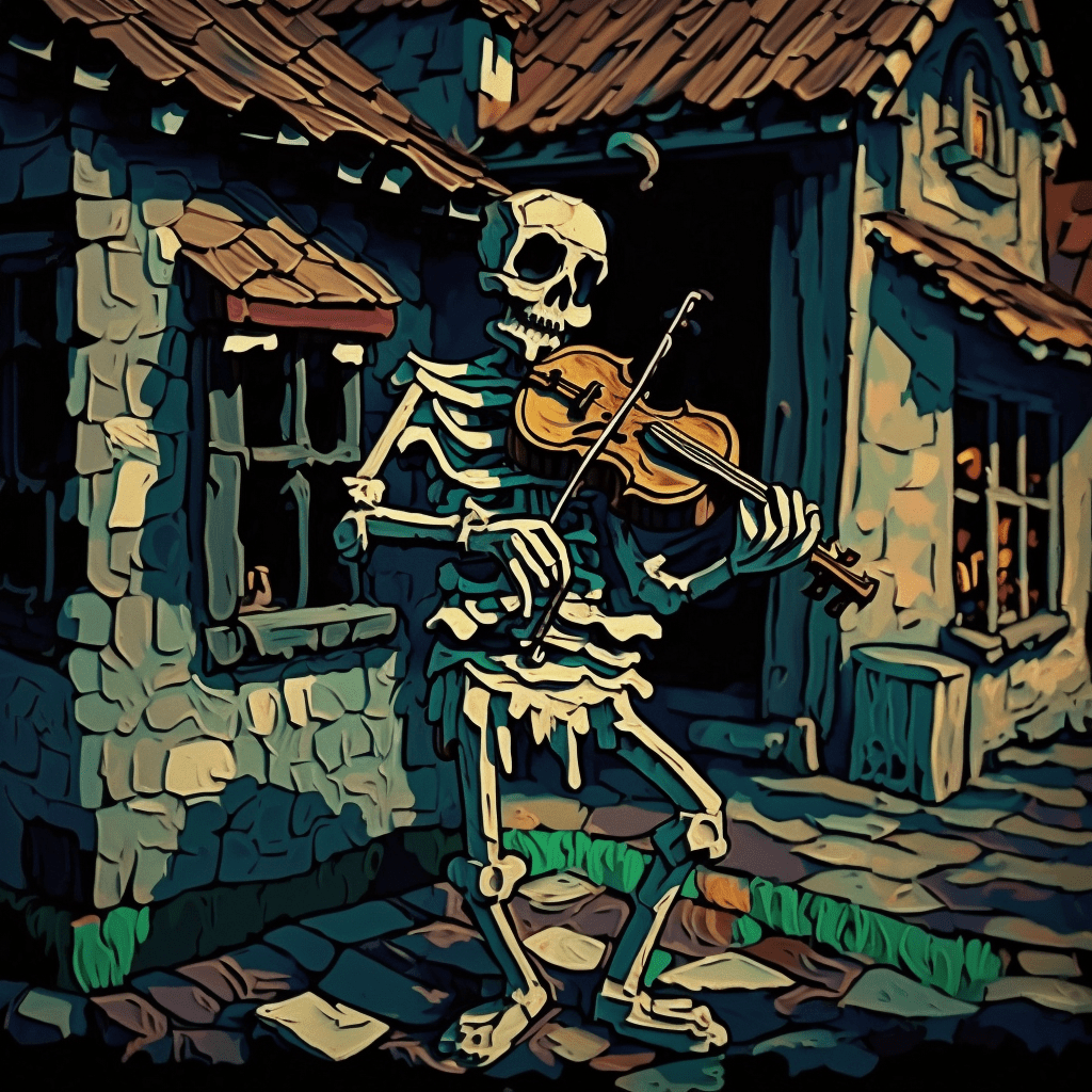 But his wild goings-on came to an abrupt end. Once, after he had let his dancing violin sound until early in the morning, he started on his way home, drunk. He strayed from the path, and in the morning he was found dead in the Sagebach. His limbs were frozen stiff and the violin he had fallen on was smashed. He was buried in a secluded corner of the cemetery, where usually only suicides were buried, without song or sound. But he found no peace in his grave. In the holy time (before Christmas) one often heard the plaintive tones of his violin. The Saw Fiddler would get up and walk at midnight to the foot of the Rachli and back under the old village lime tree of Mosnang, where the fiddle would fall silent and the fiddler would descend into the realm of shadows.