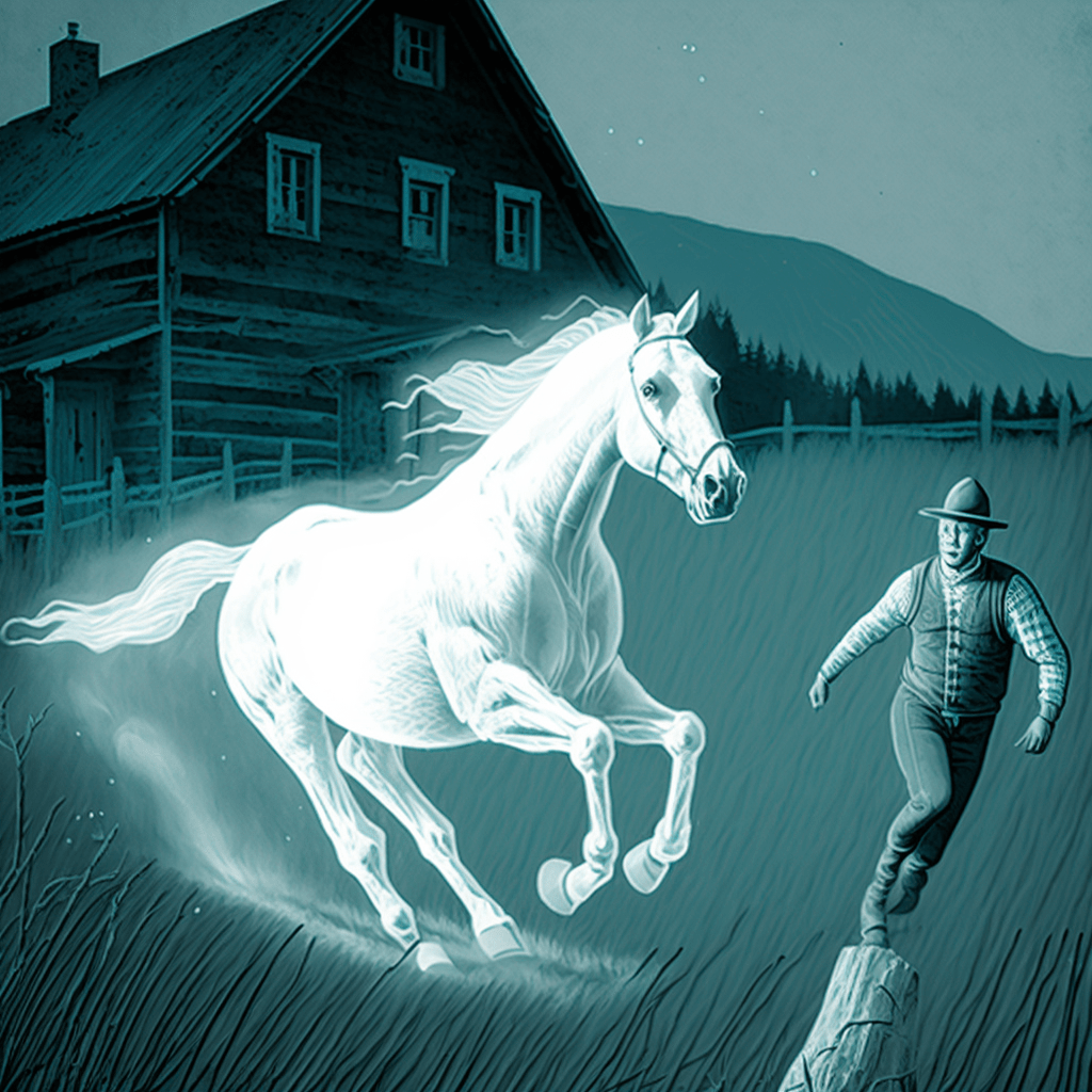 No one pleaded at his grave: “God grant him eternal rest.” Although he was buried in the cemetery, he appeared every night in Hagenau. Michel’s sister still had a stony field there. When the bells on the towers of Ganterschwil, Bütschwil and Lütisburg struck 12 o’clock, a muffled sound was heard in Hagenau. At the edge of the stone field, the earth opened up and Michel emerged, whip in hand, pale and haggard. He was immediately followed by the white horse, which pounced on his former tormentor. Fearful, Michel took flight. He jumped up and down on the edge of the field, always pursued by his white horse. Thus he ran through the whole field, returning a foot from the middle of the field after every circle. Everything had to be done in an hour; then the man, dripping with sweat and tired to death, sank to the bottom of the field, which swallowed him and the white horse up again with the first stroke of the bell.