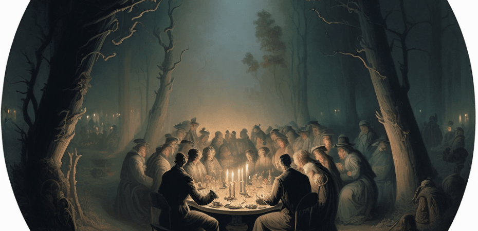 Near the hamlet of Laupen, in the municipality of Zuzwil, there is a round place in a small wood, overgrown with sedge and a few stunted pines. It is said that the witches of the surrounding area used to hold their meetings there. A merchant from Zuzwil, who traded in canvas, was returning from the market in St. Gallen one evening, saw this place brightly lit up. A crowd of men and women were sitting there at richly laden tables, eating and drinking and in good spirits. They invited him to join them. Amazed, he rode closer and watched the hustle and bustle for a while. Then he saw that all kinds of good food was served, but that the main ingredient of a meal, bread, was missing. The merchant remembered that he still had a crusty roll or “Bürli” in his coat pocket. He took it out and threw it on one of the tables. Immediately the whole company dispersed and it became pitch black. The merchant now realised that this had been a gathering of witches, crossed himself devoutly and rode home in a hurry.