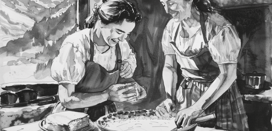 Two lads went to the Seveler-Mountain for a “Stubete” (Courting). The two girls of the house were happy about the visit and went to the kitchen to bake cakes. The boys could see into the kitchen through a crack in the door. What did they see and hear? A big toad was hanging over the pan; it was poked with the spit every time the butter needed for baking was about to run out. The girls laughed and said: “These two shall not escape us! Of course, the boys did not eat any “Küchli” (Cake) and left as quickly as possible, because they did not want to take witches as wives.