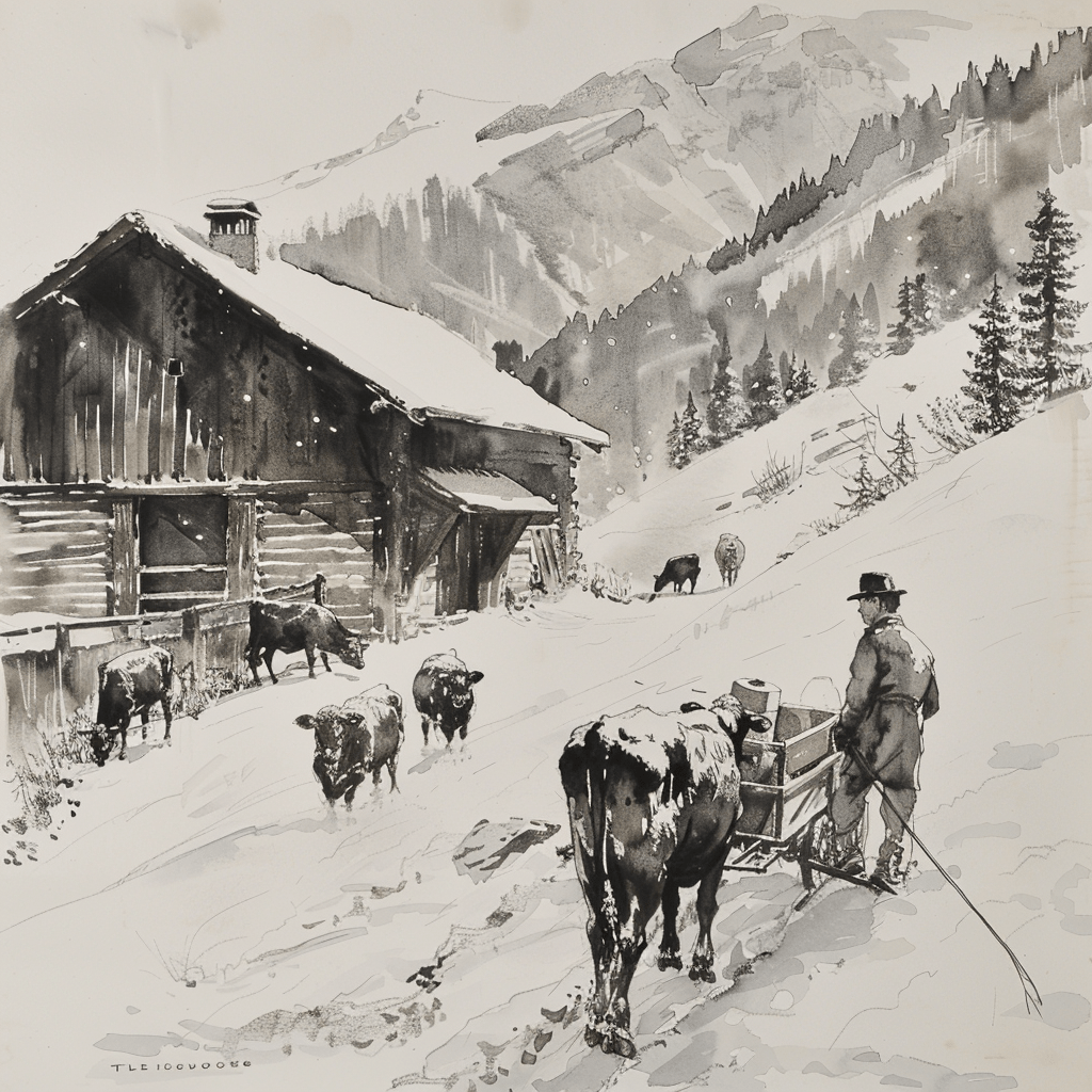 “Hans,” said the dairyman of the Altsäss alp to his boy one evening, “the Trappli has announced it; the cows are digging, and it’s snowing that night; tomorrow I’m leaving the alp; bring the sled here.” And indeed, it happened as the alpine dairyman had predicted. So much snow had fallen during the night that they had to leave the alp and bring the whey down to the valley on the “Schleipf” (Sled).