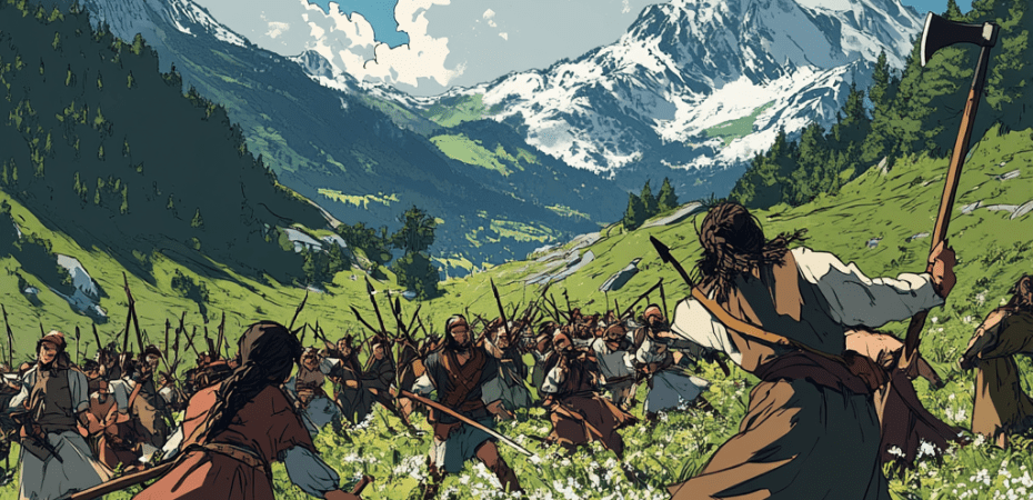 The men rushed up with halberds and other weapons of war and took the stolen beast from the Toggenburgers after bloody fighting. The place where this battle took place is called the Battlefield. Old weapons were found there long after the battle had ended.