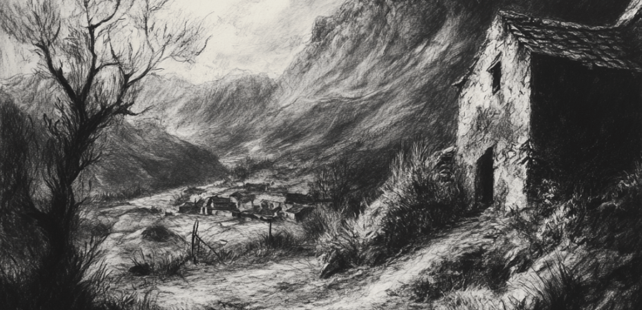 One day he drove as usual over the “Resslabühl” and under the town hall towards the little town. From the uppermost house on the left, two sisters, who only a few days ago had been blossoming virgins and who had now fallen victim to the plague, were placed on the wagon as his first burden. Their long tresses of hair hung down from the wagon to the ground and dragged on the road.