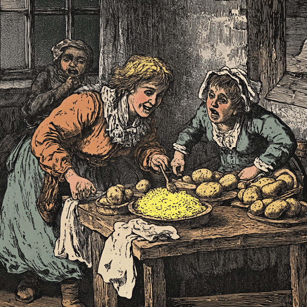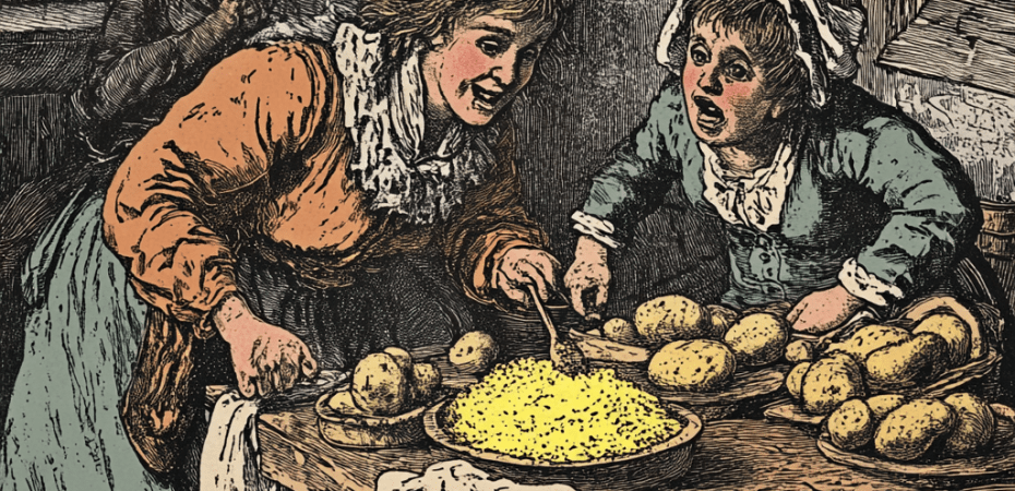 According to folklore, there was actually no lack of food in that year of misfortune; but many people had hunger fever and ate so incredibly much that others had nothing left. For example, three people ate two quarters of potatoes (45 pounds) and a large bowl of milk in one sitting; another ate a pan full of “Türkenmus” (polenta), on which ten of them could have eaten their fill; a third devoured half a “Jollen” of butter and a loaf of bread. Those who were able to satisfy their “gluttony” in this way were saved; the others perished.