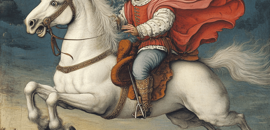 With that, the minstrel quickly hurried home, put on his Sunday doublet, stuck three colorful feathers in his hat, grabbed his fife, and in a flash was back at the Multertor Gate. “Here I am, all dressed and spruced up,” he said to the doctor. “But, unfortunately, I see no horse anywhere. Or have you, learned sir, perhaps reconsidered what you promised me?” – “The horse is saddled and bridled,” Theophrastus replied calmly. “You’ll find it tied outside by the Schützengarten, where it’s more conveniently placed than here. (The Schützengarten stood in front of the Multertor.) It’s a grey horse, quick and nimble. Mount up and hold tight with your knees; it trots briskly. But you mustn’t make a sound while you’re up there, for otherwise, I wouldn’t wager a penny on your neck.”